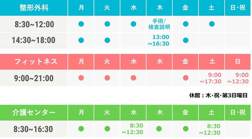 e-メディカルプラザは、1Fにe-メディカル整形外科、ほその循環器科内科クリニック、2Fにe-メディカル介護センター(通所リハビリテーション)、e-メディカルフィットネス、 3Fにスマイル歯科おざき、からなる複合医療介護健康増進施設です。皆様が長い人生をより快適に過ごせますように、痛みや生活習慣病の治療のみならず、 quality of life(生活の質)を高め、病気や寝たきりにならない健康な人生を過ごせますようにお手伝いしたいと考えています。